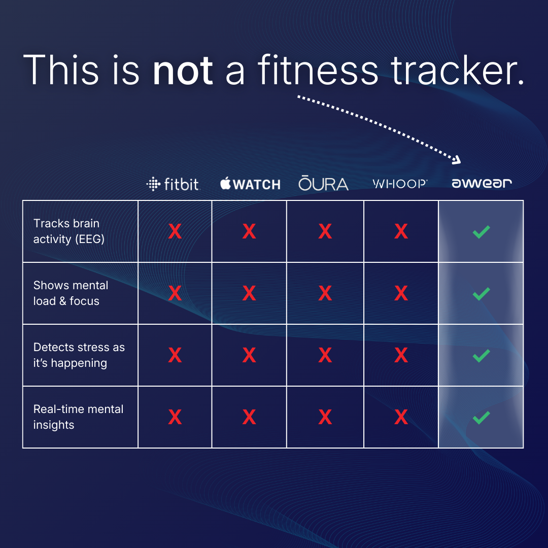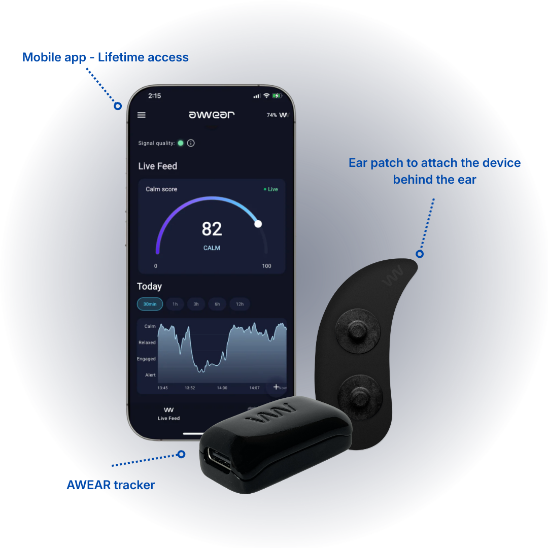 AWEAR gives you real-time feedback from your brain — so you can reset before stress escalates.